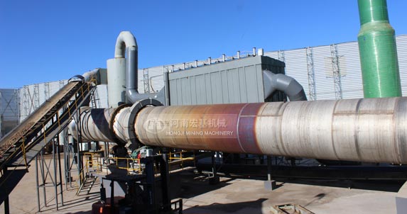 濕物料在筒體內(nèi)向前移動(dòng)過(guò)程中,直接或間接得到了載熱體的給熱,使?jié)裎锪系靡愿稍?,然后在出料端?jīng)皮帶機(jī)或螺旋輸送機(jī)送出。在筒體內(nèi)壁上裝有抄板,它的作用是把物料抄起來(lái)又撒下,使物料與氣流的接觸表面增大,以提高干燥速率并促進(jìn)物料前進(jìn)。載熱體一般分為熱空氣、煙道氣等。載熱體經(jīng)干燥器以后,一般需要旋風(fēng)除塵器將氣體內(nèi)所帶物料捕集下來(lái)。如需進(jìn)一步減少尾氣含塵量,還應(yīng)經(jīng)過(guò)袋式除塵器或濕法除塵器后再放排放。